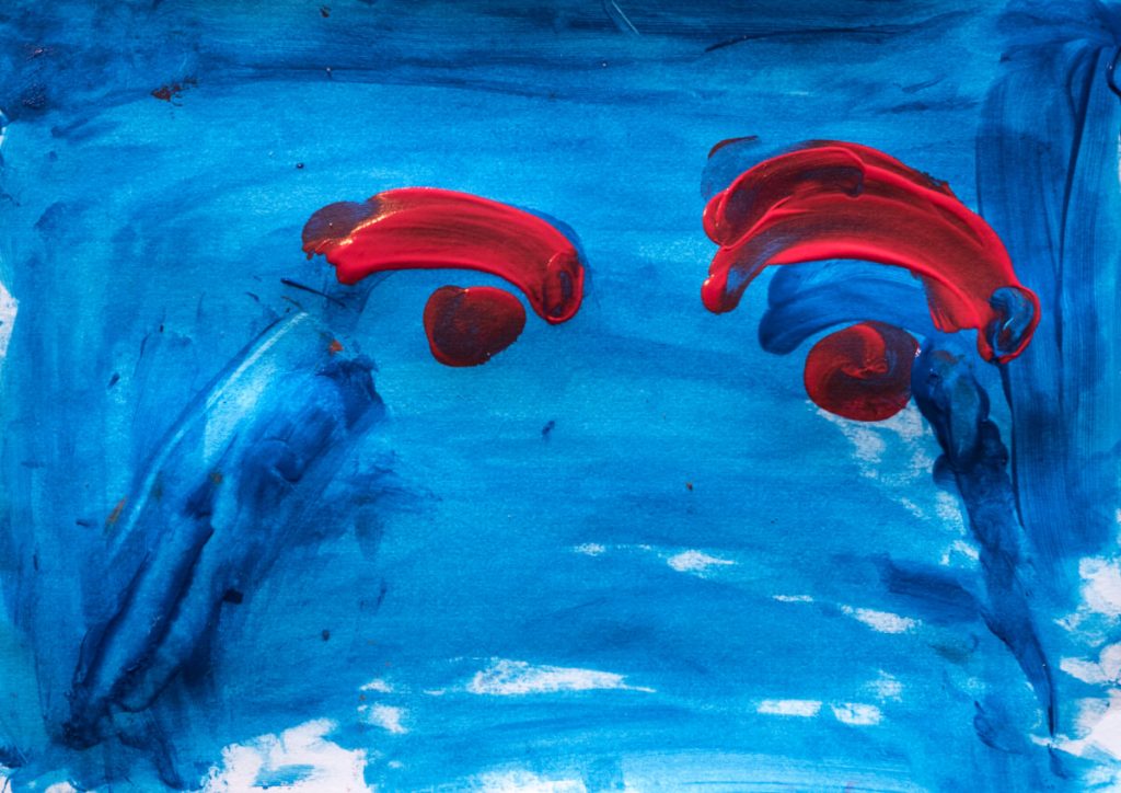 The picture is of a djinn (genie). There is a girl in the picture. The djinn follows her. The eyes are of the girl, she has cried so much her eyes are red. The girl is frightened. The djinn is not here, it has disappeared. The girl last saw it in Syria. The djinn is gone. “I am afraid of the djinn.” When I was in Syria, I as afraid of it. I am not afraid of it now.