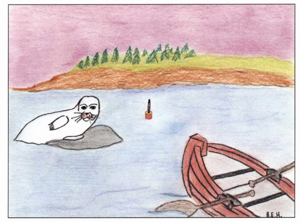 Each day Abigail would rendezvous with Alex and bring a bucket of fresh fish, their love and friendship blossoming like wild roses in the ocean air. To remem-ber this budding friendship Abigail was carving a seal out of driftwood she found in her cove.