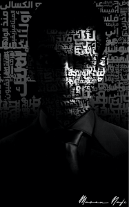 Artist's description of the piece (translated from Arabic): There is something hiding behind the painting. There is a ghost behind it. It is the ghost of someone. (Who?) (No answer to that.