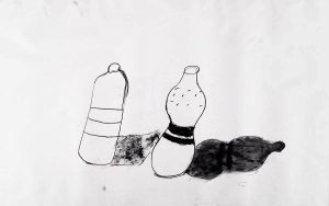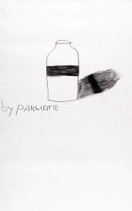 Artist's description of the piece (translated from Arabic): There is something hiding behind the painting. There is a ghost behind it. It is the ghost of someone. (Who?) (No answer to that.