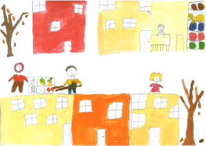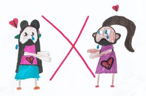 In this drawing there are 2 best friends wanting to hug each other but they aren't allowed due to CoVid19.