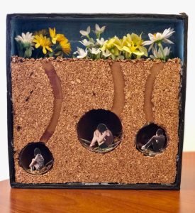 Artist's Note: This digital art is a human-shaped fishbowl. Fishbowls are like a cage because the fish can't go anywhere, but they also protect the fish by keeping them in water.