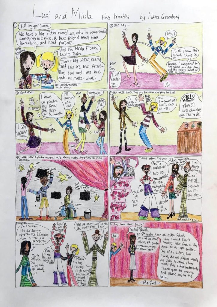 This is one of my graphic novel series, “Luxi and Miola.” It is about two 4th grade girls who are twins that have daily adventures and a bit of chaos, and their fashionista 8th grade sister who is sometimes annoying. I hope you like it!