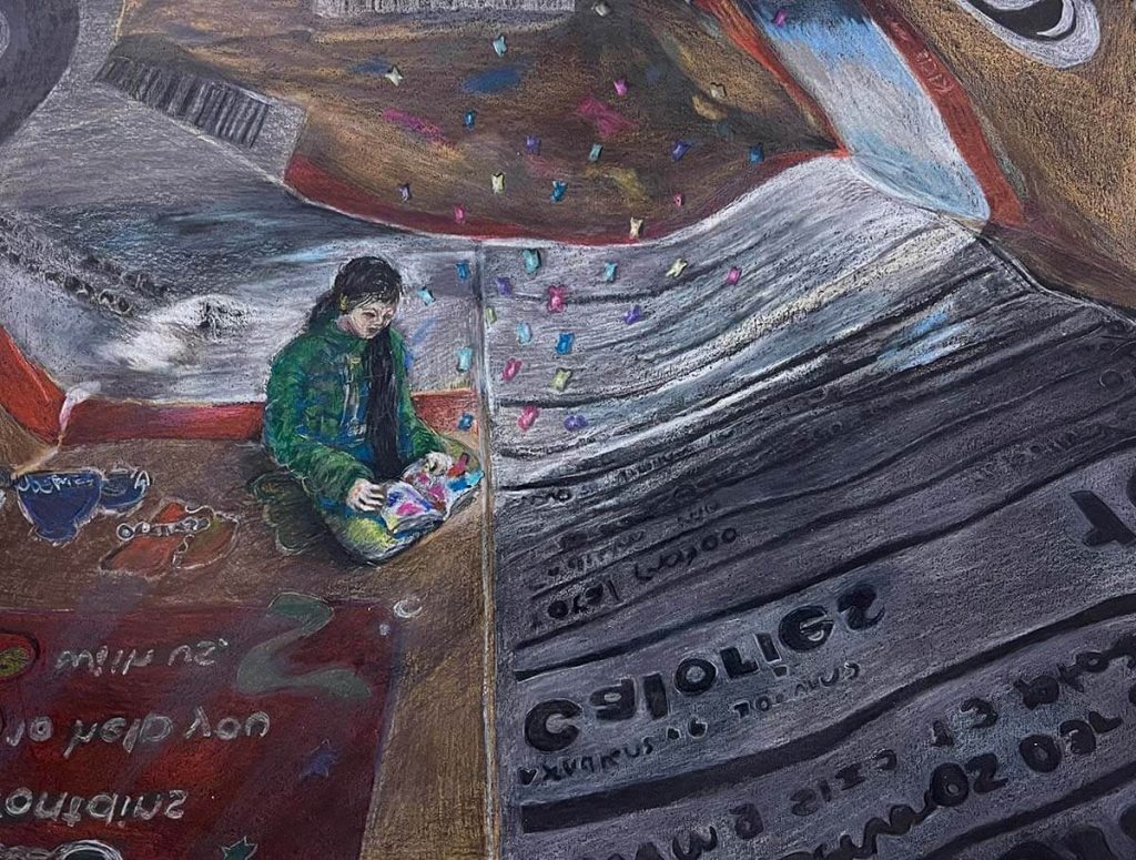 In our first workshop of the new year, we were so happy to see many familiar faces, as well as many new ones. Conner began the workshop by reading three examples of micro fiction—“Sticks” by George Saunders, “Give It Up” by Franz Kafka, and “You Know, Quiet” by David Gaffney. Then, Conner asked students to outline characteristics of micro fiction based on these examples. Students concluded that some key features of microfiction are that the brevity of the pieces forces readers to “think about the title, and the “iceberg technique” is used, meaning much context is left unwritten. Conner advised students to move fast, start in the middle, introduce few characters, and choose words carefully, using few to no adjectives. As a mini-challenge, Conner then gave students one minute to write a prompt based on the examples of micro fiction they had read.
