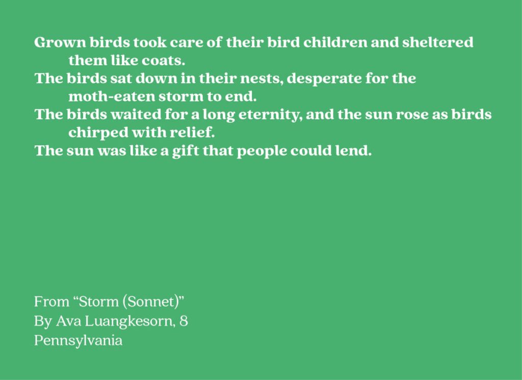 And soaked. Birds chirped for help as hatchlings closed their eyes and heard everything.