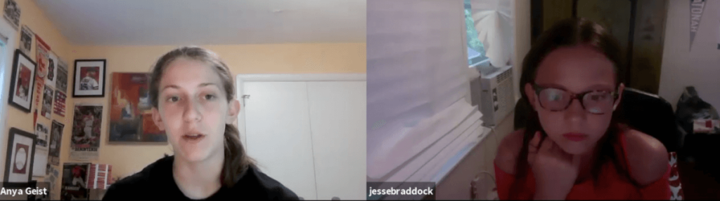 Stone Soup contributor and 2020-21 intern Anya Geist, 14, talks with contributor (in art and writing), three time winner of the Weekly Flash Contest, and co-second place winner of the 2019 Book Contest Analise Braddock, 9, about the freedom of creativity and the long, arduous, but rewarding project of writing a book of poems.