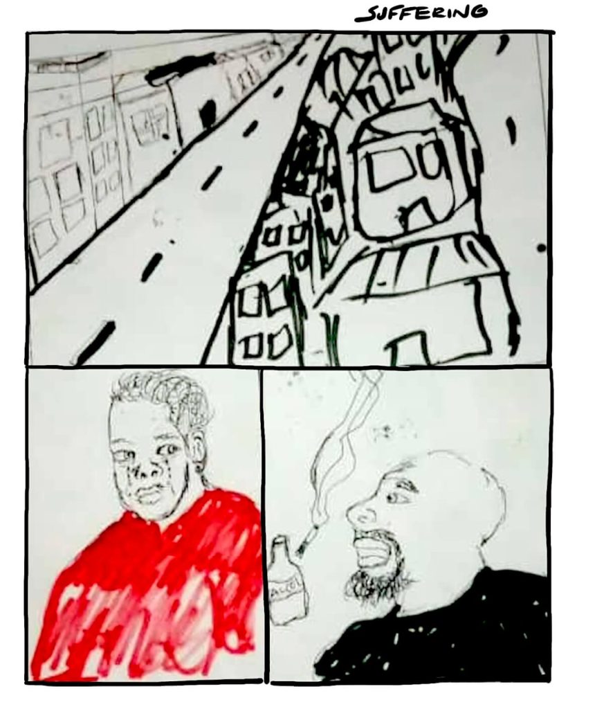 One day, my mother went out to look for work but returned with nothing. We went to bed horribly hungry, without eating anything at all. While we were sleeping, my father returned home. He started banging on the door violently, demanding to be let in. My mother got up and went to open the door for him. He shouted, demanding food. When she told him there was none, he insulted and beat her. He yelled. He threatened to leave us. I felt horrible seeing my mother like this. When morning came, my father left. We had no idea where he went.