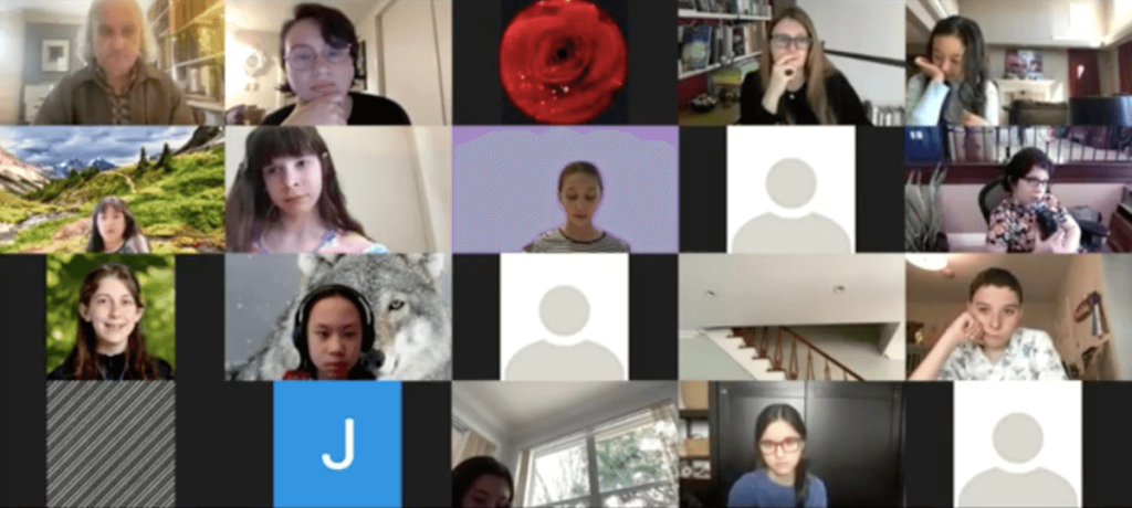 On April 3, 2021, we held our second official end of term reading, a showcase wherein our authors read aloud their best work in front of an audience. While not all of our authors decided to share their work, the formal reading still served as a way of honoring all those who attended the Writing Workshop, whose sharing of work and space over the course of the session strengthened the writing of everyone involved. So, thank you Madeline K, Sophie, Lena, Hera, Julia, Ava, Sierra, Anya, Margaret, Peri, Grace, Liam, Enni, Nami, Anna, Lucy, Maggie, Lina, Sadie, Reese, Samantha, Katie, Tilly, Nova, Iago, Leo, Georgia, Eve, Simran, Ismini, Jonathan, Yasmine, Analise, Charlotte M, Elbert, Emi, Angela, Emma, Noa, Katie P, Pranjoli, Alice, Tegan, Rachael, Olivia Z, Kaidyn, Lucy, Sage, Olivia G, Olivia S, Ruhi, and Madeline S for your continued participation throughout the course of this session, and for inspiring each other to take your writing to greater heights. We are all so proud of all of you!