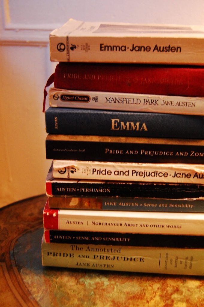 My book collection consists of books which really mean something to me. It can be something that inspires memories in me, has characters I identify with like I do with no others, or simply strikes me as a book which is second to none. When I check out something from the library which I’m unable to part with after weeks and even months, then I know it belongs in my collection and I usually buy a copy off Amazon or from the bookstore. Perhaps unsurprisingly, most of the books are also by Jane Austen – upon reflection, the humor and archaic language appealed (and still does appeal) to me more than any other style.
