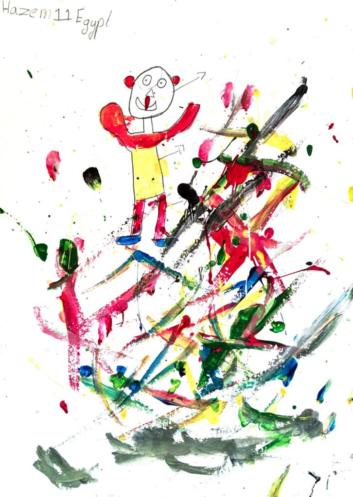 Body Map By Emma Birches Published August 1, 2021 Hazem, 11, Lebanon I am fine, he said. But this is what is in my head, he said, pointing to the wild paint strokes and spatters.
