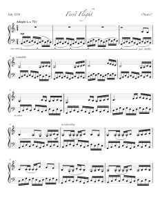 From the composer: "'In Adagio in A Minor,' the rhythm keeps changing under the same time signature of 9/8, with very few common features between different bars. This piece does not maintain a standard rhythm...
