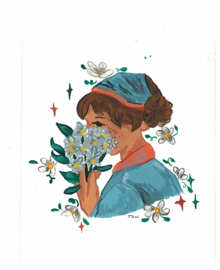 This girl is covering her face as covid has urged us all to do. The roses represent the beauty we can find even when things aren’t going quite how we want.