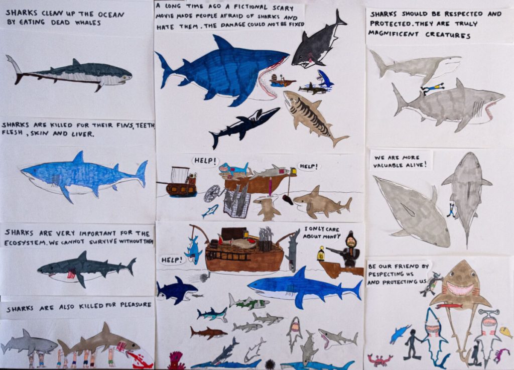 When I grow up I want to learn a lot about sharks and protect them. For now me and my little brother remove from the beach plastic bottles and garbage so that they do not harm my animal friends. I also draw sharks all the time and try to spread awareness! Maybe I have hundreds of them. They fill me up with excitement and joy.