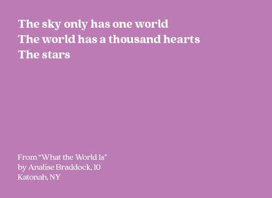 The international magazine of stories, poems, and art by young writers and artists. Published continuously since 1973.