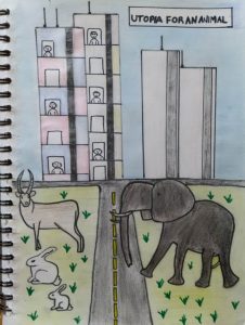 “Utopia for an Animal” is a pictorial representation of how the coronavirus has changed our lives. As depicted, humans are stuck inside their homes and apartments, as animals outside frolic and play in an area...