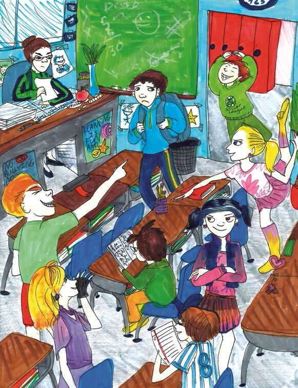 Read Erin’s story twice, then read it again. Each time you will notice more little details and bits of dialogue that make the people and places come to life. Most of all, notice how Erin shows us, through her well-crafted story, that it is wrong to tease, wrong to bully, and wrong to stereotype.