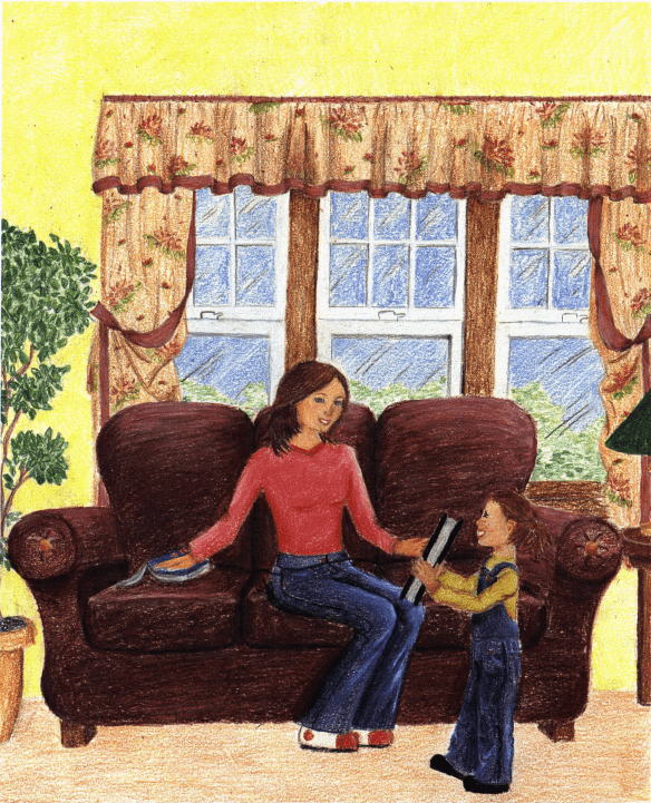 When I turned five, I finally got to come with my family into the cool room! It was even better than I thought it would be! The ceiling was one million feet tall with huge lamps all over! Rows and rows of benches filled up the huge room, and there were tons of huge flower pots with flowers to match. Finally, I got to put on a cool dress and sit on a bench next to all of the other fancy-dress people too! I was so excited! I didn’t understand exactly what was happening or what people were saying, but I knew it was cool.